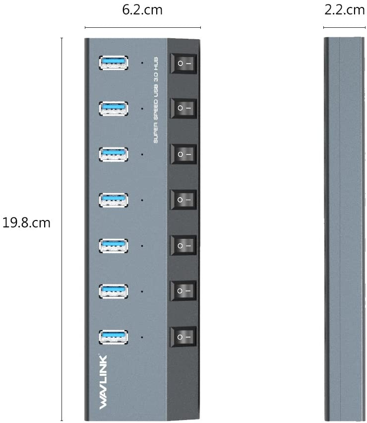 - 【5Gbps Data Transfer】7 Super speed USB 3.0 ports support transfer speed of up to 5Gbps, transferring HD movies / large data in no time. Backward compatible with USB 2.0/1.1.