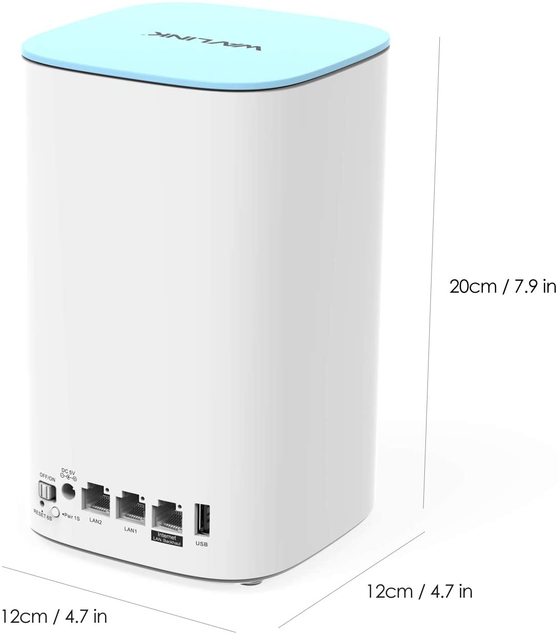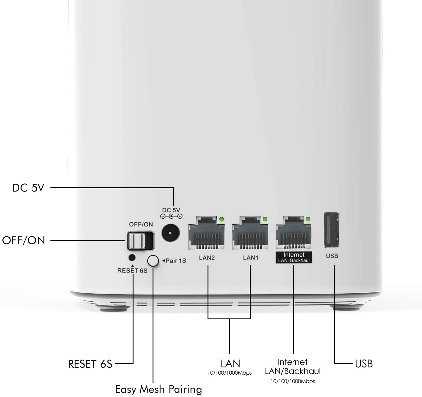 • 【No more WiFi Dead Zones】 Extensible to as many as 10 Mesh Satellites.Simultaneous 5GHz 867Mbps+1733Mbps and 2.4GHz 400Mbps connections, total available bandwidth of 3000Mbps.Built-in high-power amplifiers to provide extreme Wi-Fi coverage and penetration, If one Node loses connection, the remaining units will reestablish Internet connection, automatically and seamlessly