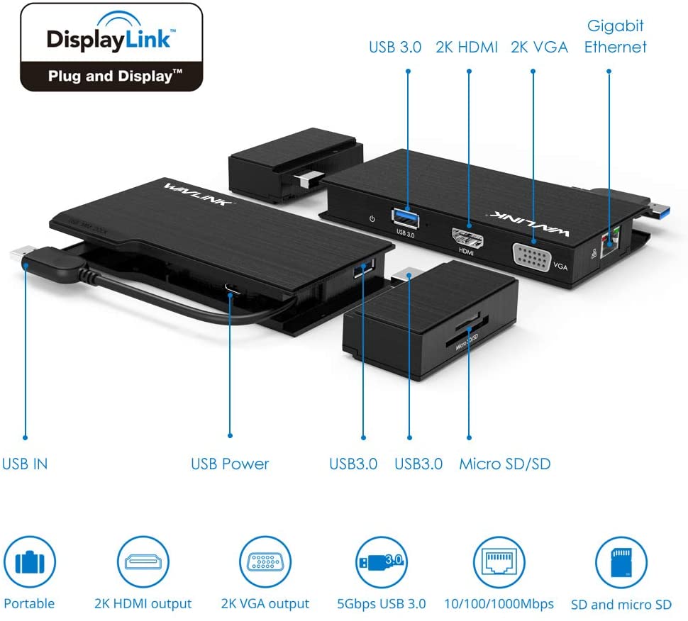 - System Support: Windows 10, 8, 7,& legacy XP systems,Chrome OS R55. Attention: Surface RT, Mac OS (10.13.4 – 10.13.6)/Linux/Unix are not supported. Docking station is suggested for use with web and productivity software; not recommended for gaming(see Display Link website for more details)