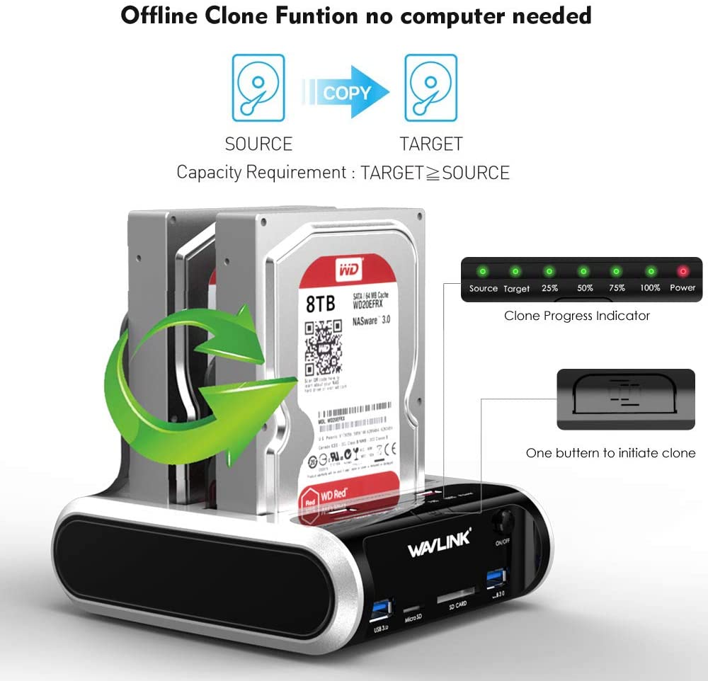 WAVLINK USB 3.0 to SATA Dual Bay External Hard Drive Docking Station with Offline Clone & UASP(6Gbps) Function